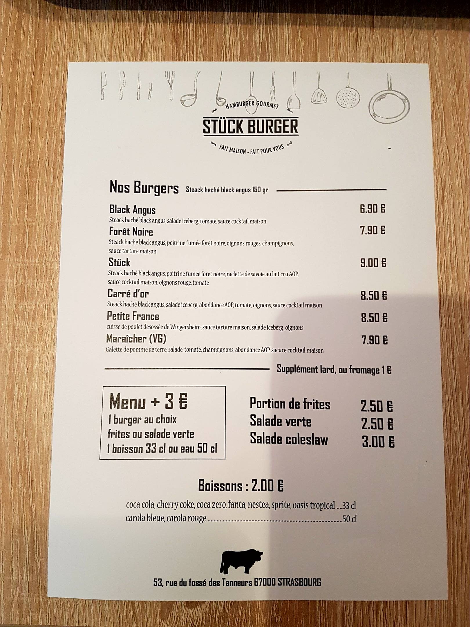 Au détour d’une balade en ville, j’ai pu voir que le MADE IN FRANCE célèbre pour ses sandwichs énormes dans la rue du fossé des Tanneurs, avait laissé sa place au Stück burger, encore un snack de burgers faits maison. Original non?