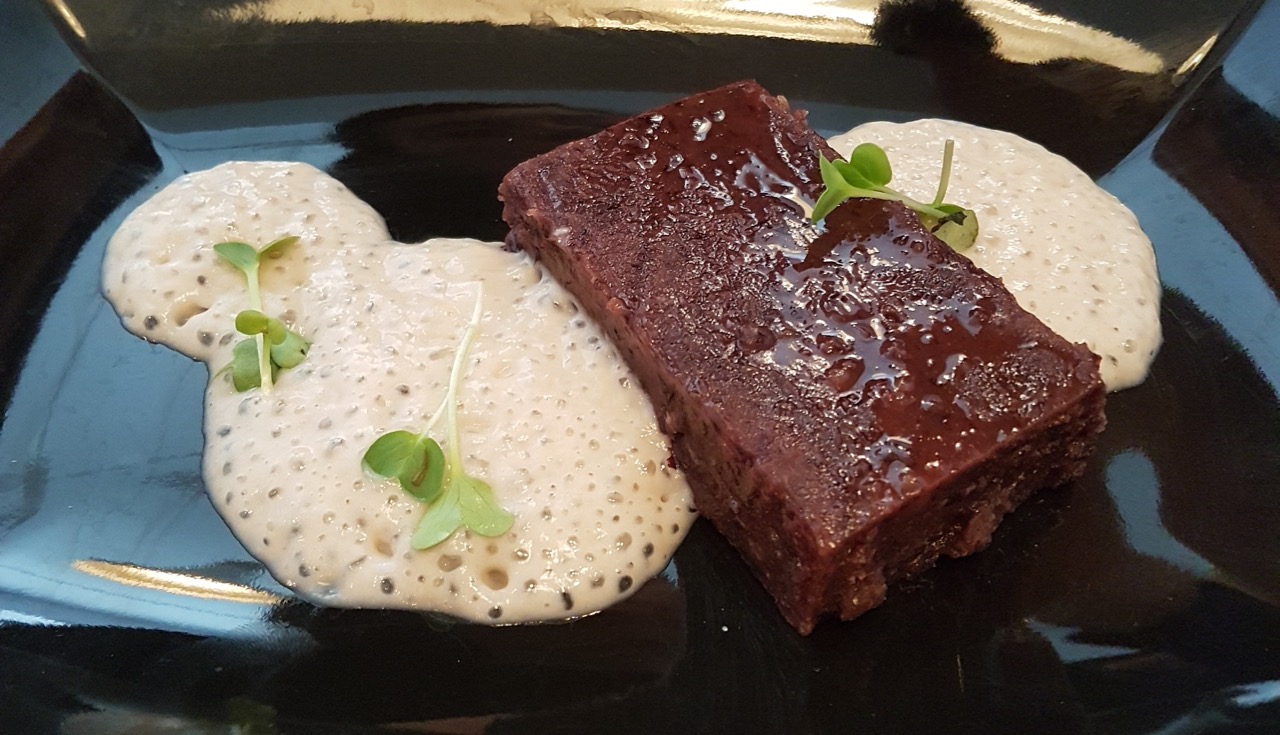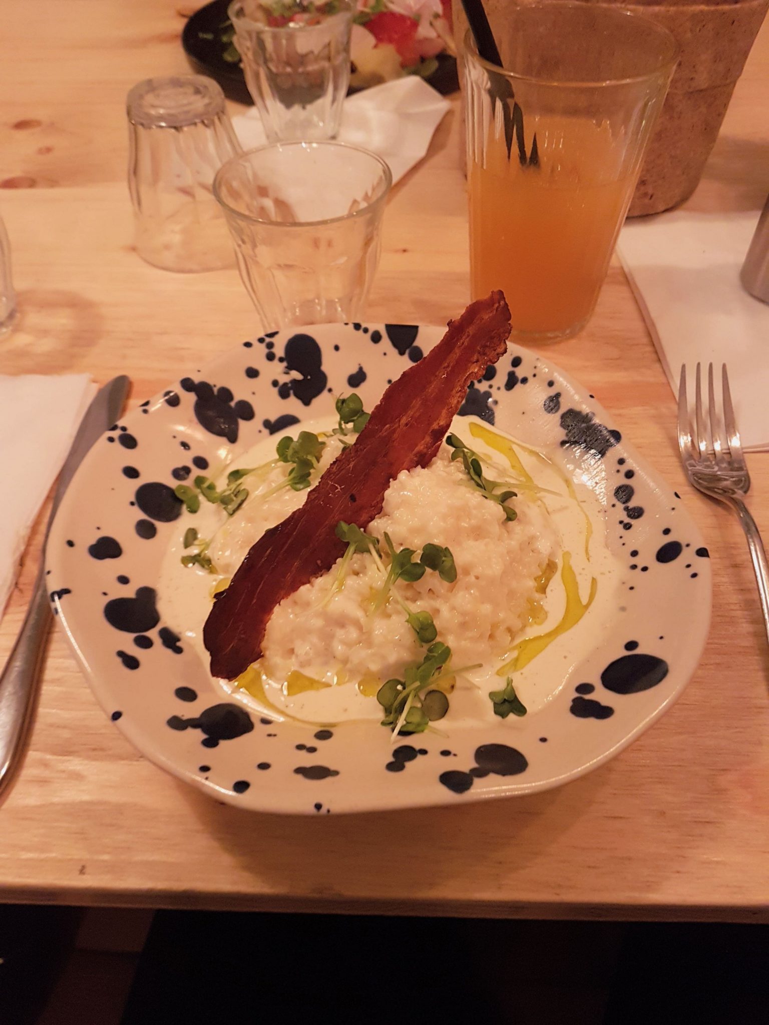 Un GinTo de qualité choisi parmi leurs nombreuses suggestions en guise d’apéro; Le risotto de sarrasin et jambon de Vendée en plat, goutû et copieux