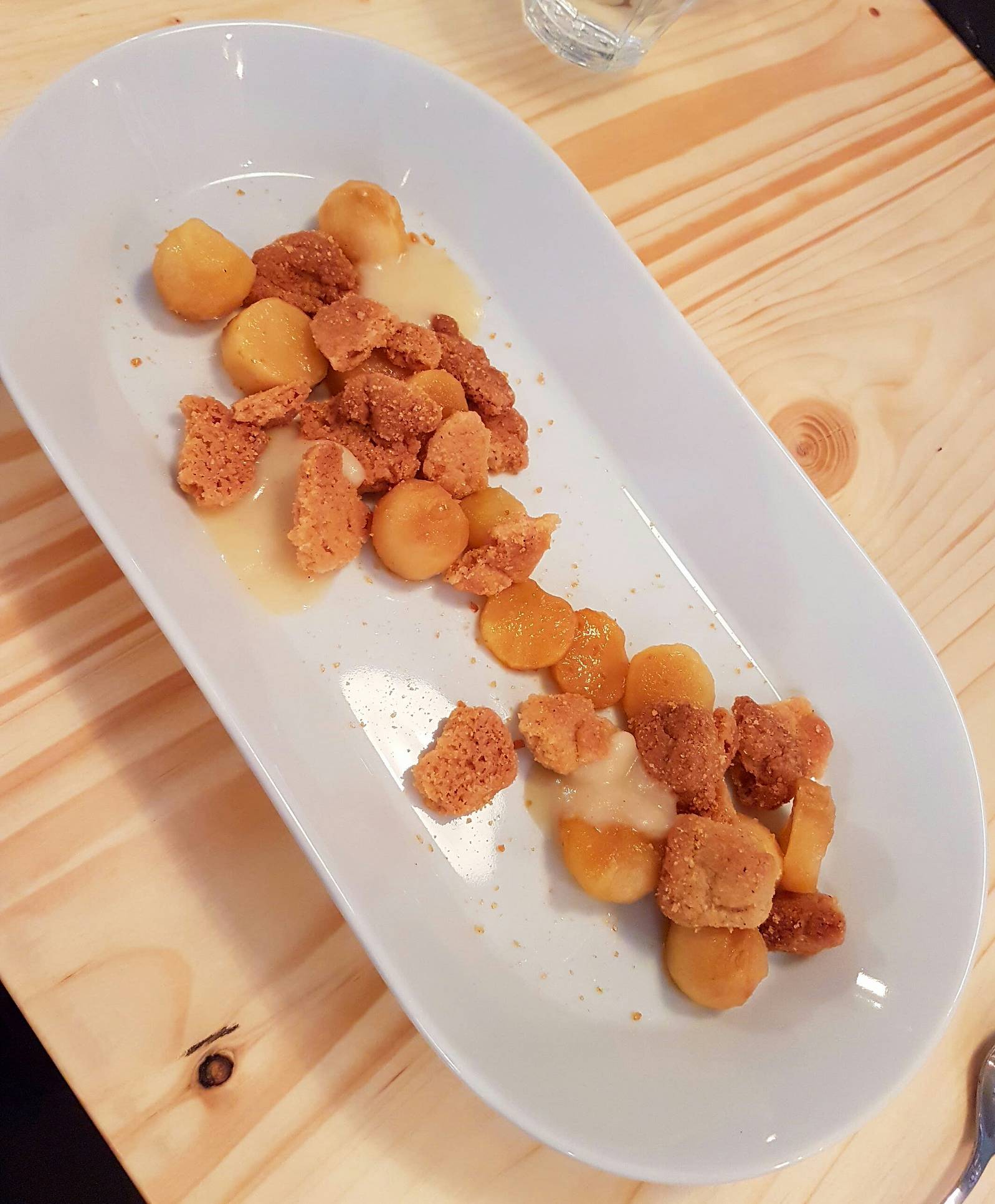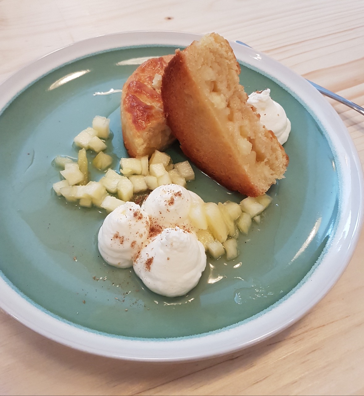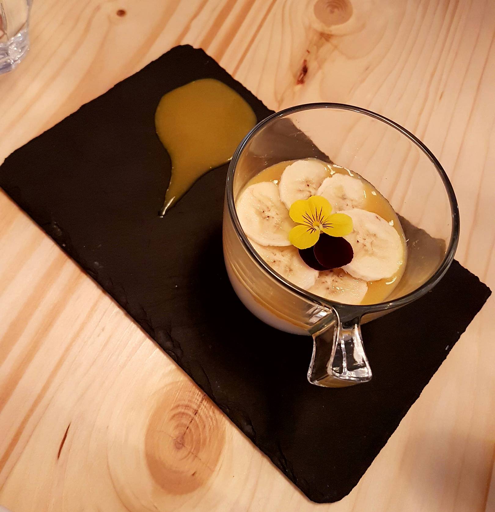 On finit tranquillement nos plats et forcement, on ne pouvait pas en rester là, on part donc sur un dessert : Pommes caramélisées et streusel aux épices, et une Panna Cotta au coulis de fruits exotiques. Encore une fois rien à redire sur les desserts : bons et pas trop chers.