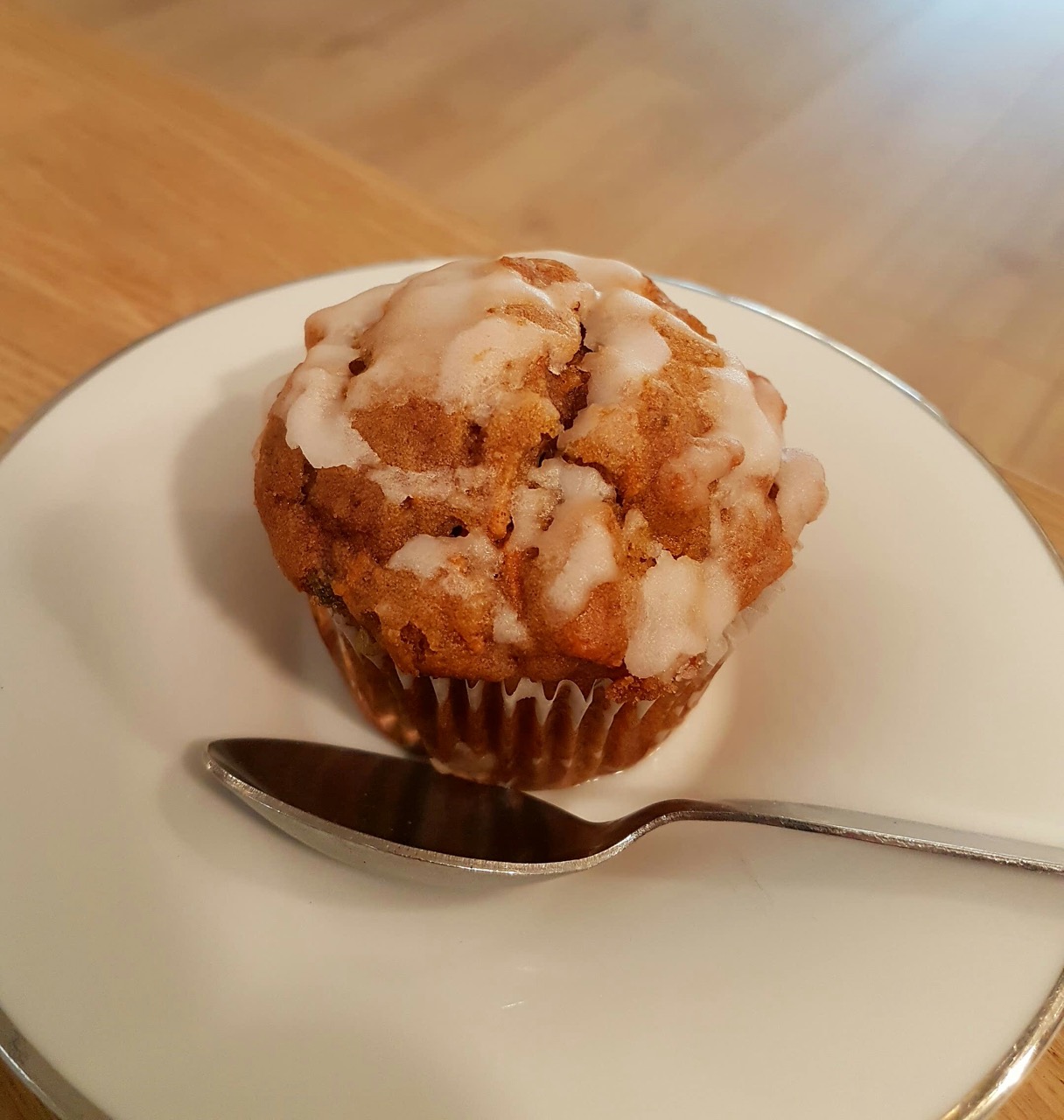 C’est un café classique, style coffee shop avec la possibilité de faire réparer (ou acheter) son vélo, acheter des accessoires ou tout simplement regonfler ses pneus, le tout en sirotant un elixir caféiné. Ce jour là, j’étais à pied, dommage, sinon j’en aurai profité pour faire un check-up de mon deux-roues. Accompagné, on s’est posé en haut, sur la mezzanine, car le soleil avait beau être là, l’air était plutôt frais. Il n’y a pas de carte, il faut donc être observateur et choisir son breuvage sur le magnifique mur verre derrière le comptoir. Je voulais un chocolat chaud il n’y en avait pas. Ma co-testeuse voulais une menthe fraîche, il n’y en avait pas non plus : pas de bol pour un samedi 16 h 30 ! On s’est rabattu sur une tisane Moorea aux fruits exotiques à partager et deux pâtisseries (une petite Linzer Torte et un Carrot Cake).