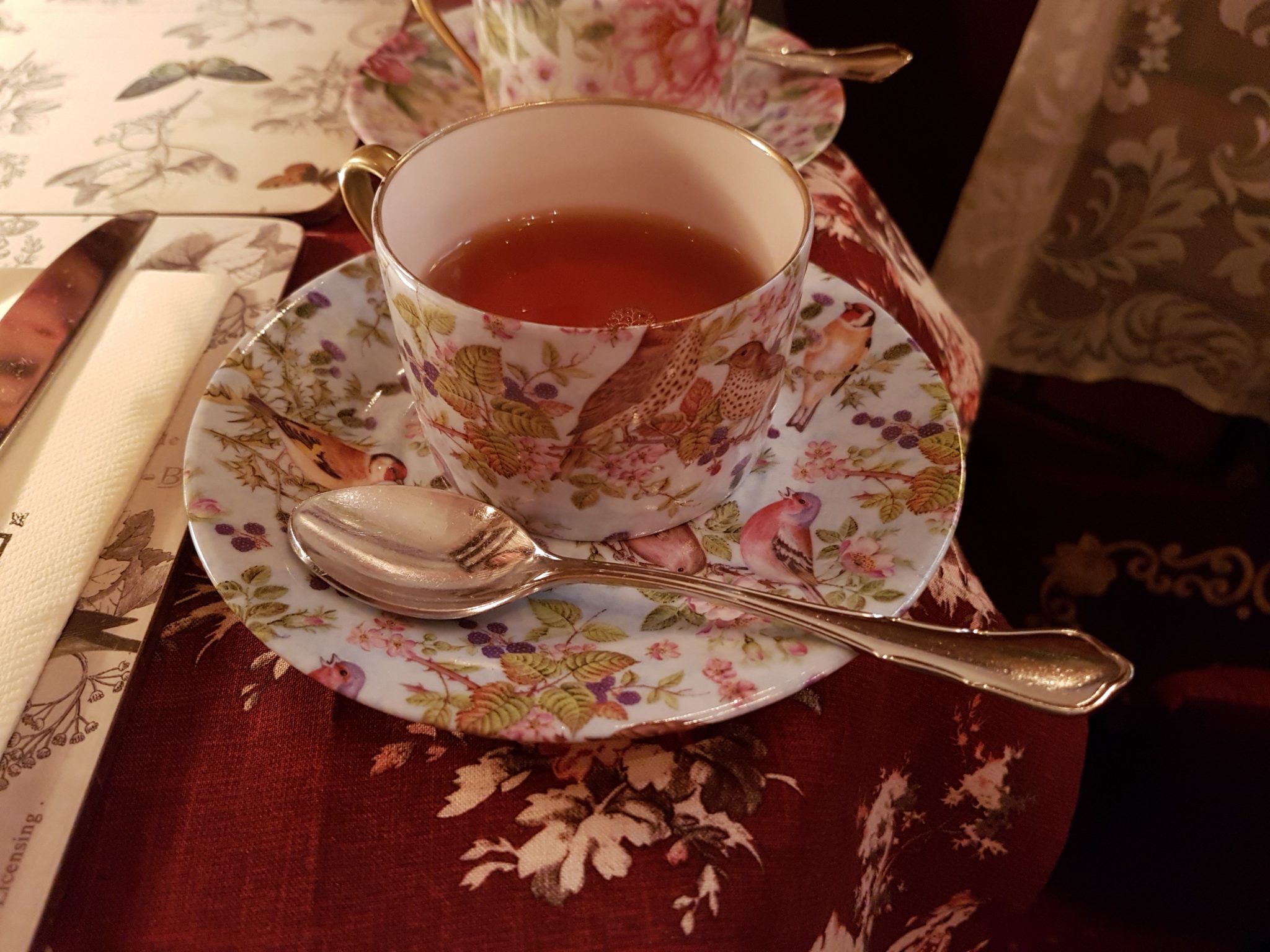 Avec ma convive, on a donc été invité à déguster un de leurs “petits déjeuners enchantés” : deux formules (au choix) raffinées et gourmandes entre sucré et salé. On a tous les deux opté pour la formule “Picadilly Breakfast” : Madeleine du réveil “Morning”, cocktail de fruits de saison, petit club sandwich, œuf à l’anglaise et sauce sucrée-salée, chutney de légumes, chausson aux fruits et pain à l’infusion de thé. La formule est à 23 euros, la boisson chaude comprise. Vous pouvez choisir votre boisson parmi la collection de thés faits maison imaginée et élaborée par les propriétaires Fred & Laurent : une soixantaine de thés ou infusions qui poussent au voyage gustatif ! Tous les éléments du petit déjeuner sont exquis, bien cuisinés ni trop salés ni trop sucrés. J’ai surtout aimé l’œuf à l’anglaise : un délice !