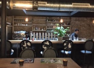 J’ai déjeuner en terrasse et il y avait pas mal de vent ce jour là donc il fallait faire attention que les serviettes, cartes, sets de table ne s’envolent pas. Je suis tout de même rentré dans le restau pour voir l’intérieur et pour le décor, je partage totalement ton avis : ce mur jaune, ce bar, ces oeuvres d’artistes, mention spéciale à Dan23 :).