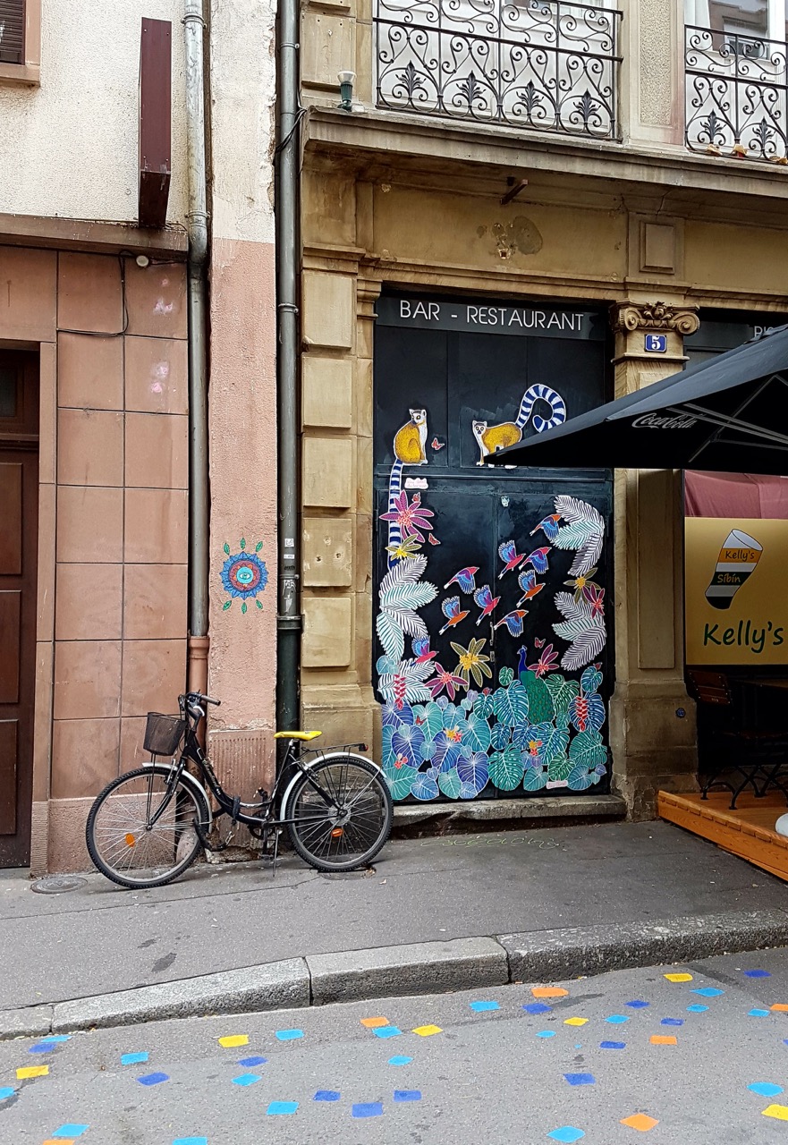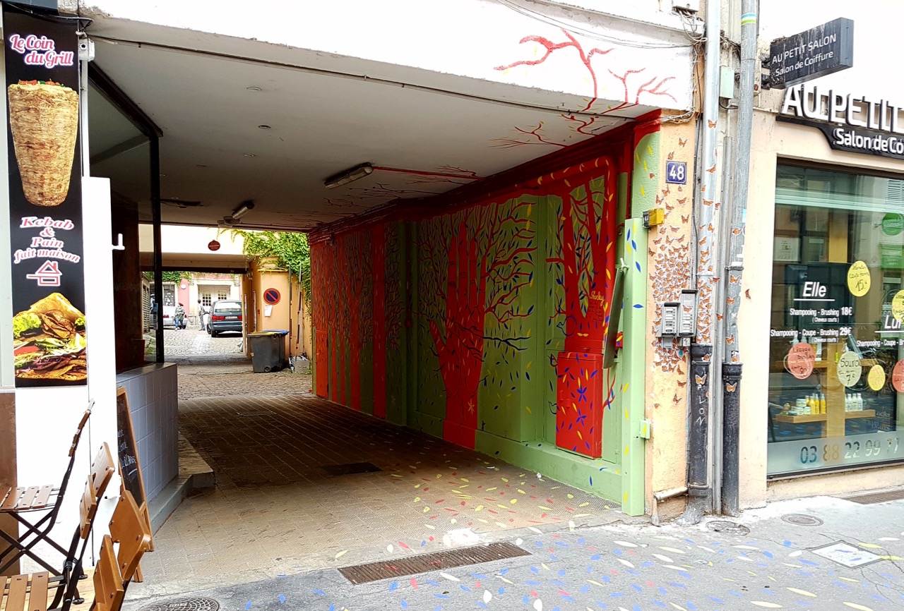 A croire que le street art est à la mode à Strasbourg en 2017 : en plus des œuvres déjà présentes partout dans les rues et du chantier du Primark Strasbourg, l’art urbain s’installe de la plus belle des façons dans la rue du Jeu des Enfants. En effet, cette rue vient de passer piétonne depuis le 24 juin, et si vous l’avez déjà empruntée depuis, vous avez pu voir ses pavés colorés, ses graffitis de streetart, ou encore ses terrasses des restaurants qui donne une ambiance plus chaleureuse à la rue, surtout avec l’été qui arrive…