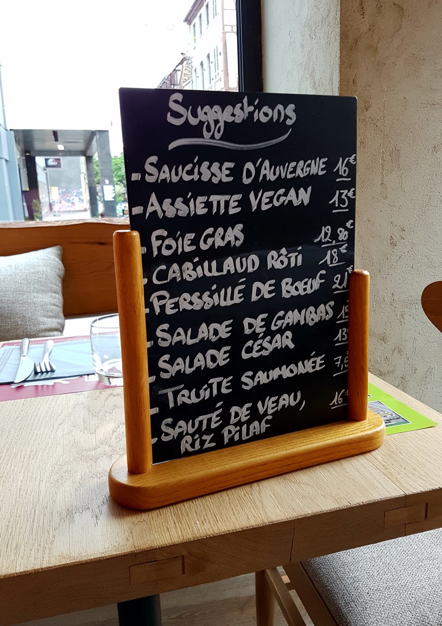 Très bel écrin, rien à dire : je me suis meme forcé à aller aux WC pour visiter l’endroit ! C’est top. Par contre, l’ensemble est encore en rodage : les serveurs font de leur mieux mais les automatismes ne sont pas encore là. Quant aux plats, j’ai été un peu déçu de la qualité et surtout du prix, je vous explique : on était deux : 1 entrée partagée, 1 sirop, 1 bouteille d’eau, 2 salades, 2 desserts et un café : 51 euros ! Certes, on est dans les prix de Strasbourg centre, ok pour les desserts et les boissons mais bon les salades étaient un peu chères pour le contenu de l’assiette.