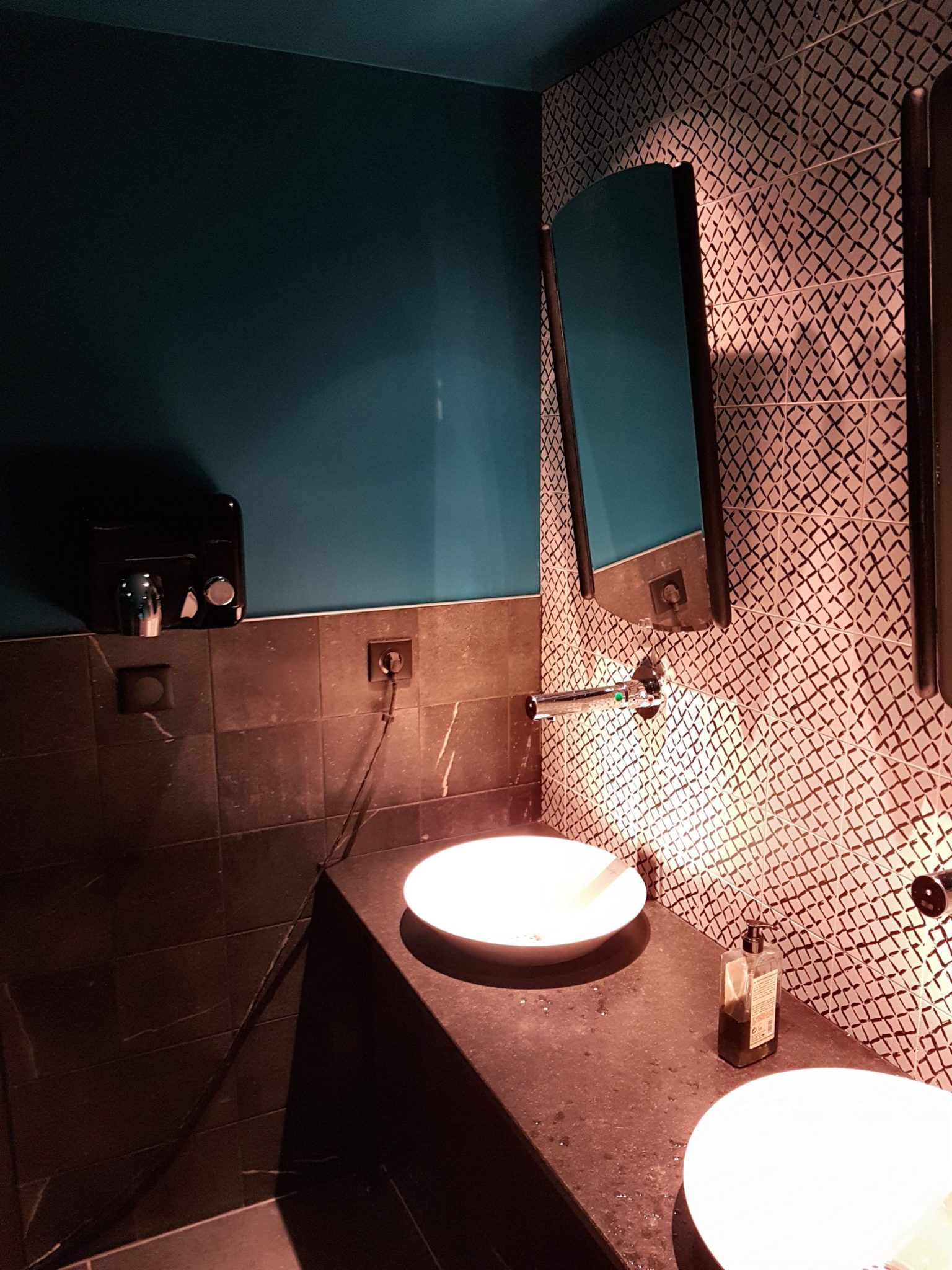 On repart de là un peu déçus : Certes, l’hôtel vient d’ouvrir. Certes, on savait dès le début qu’ils ne servaient que des croque-monsieur… Mais, le service était correct sans plus : la serveuse écoutait même notre conversation ce qui nous a un peu surpris ! La décoration est à tomber, mais les plats suivent pas : mal présentés, les plats corrects mais les desserts pas du tout adaptés. C’est à se demander si il y avait un chef en cuisine ou si la direction de l’hôtel a testé leurs formules avant de les mettre à la carte ? Je m’attendais à mieux du restaurant d’un hôtel 4 étoiles… Alors oui, apparemment la carte est temporaire, espérons qu’ils aient des meilleures idées pour la suite. Par contre en toute honnêteté, l’addition était correcte sans plus : moins de 20 euros par personne pour 2 croque-monsieur chacun, un Perrier et une salade. Pour moi, l’endroit prend tout son sens plutôt pour boire un verre le soir ou en journée pour bosser.