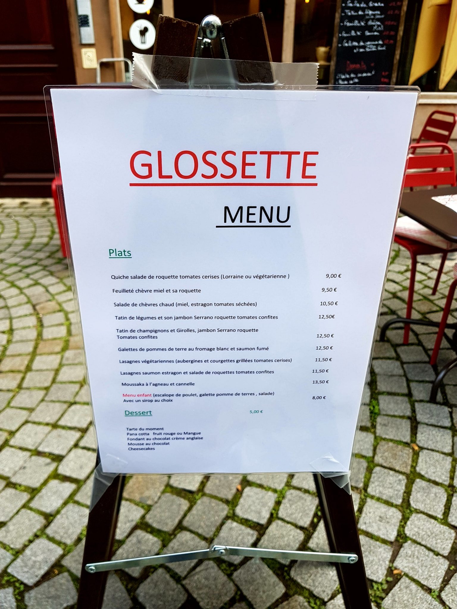 Je passais dans la rue Sainte Barbe en vélo en début de semaine, et j’ai remarqué que le Gagao qui se trouvait ici ne s’y trouvait plus… En effet, il a été remplacé par « Glossette » un petit restaurant bar. Je n’ai pas eu le temps de m’y arrêter MAIS j’y suis retourné deux jours plus tard pour manger à midi…