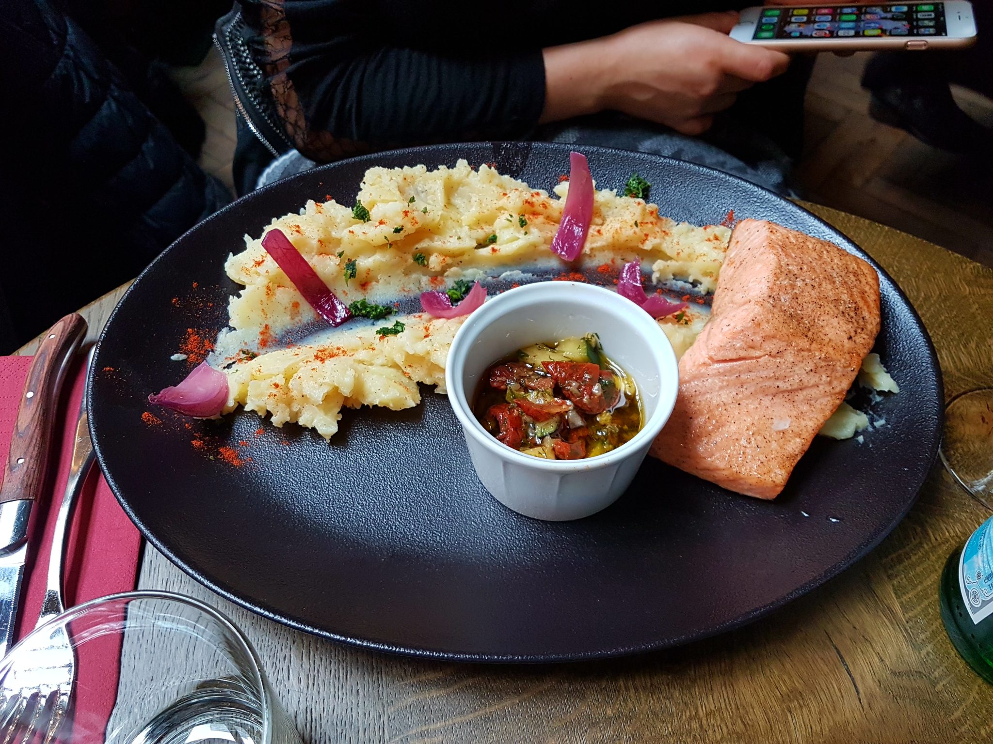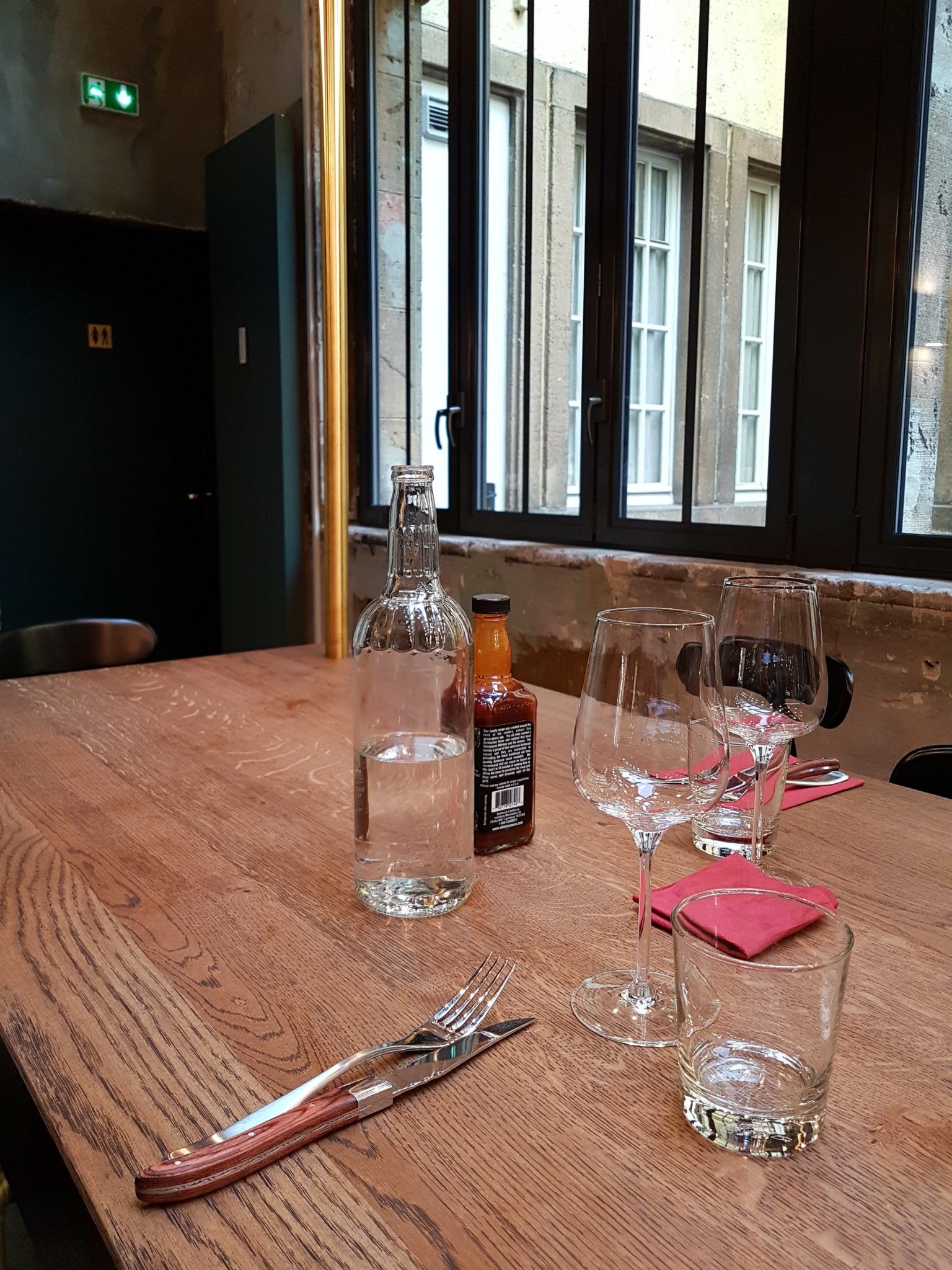 Petite note sur le service : on est tombé sur un serveur très sympa, souriant et efficace; ça fait toujours plaisir. On m’a même offert le café (sans que je le demande) suite à mon expérience d’enfermement dans les toilettes 🙂 (honte à moi quand même !)