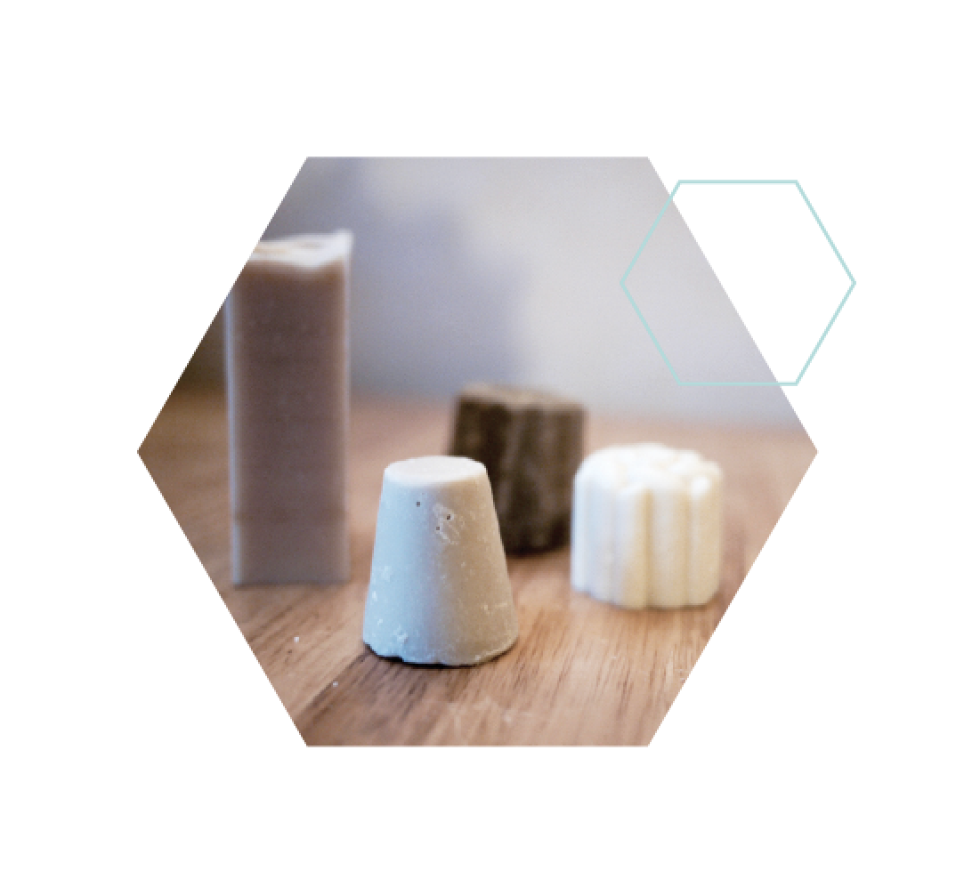 | Et pour la maison, il y a : – Lessives et nettoyants – Bicarbonate de soude et autres poudres – Vinaigre blanc – Savon noir | Sans oublier, la salle de bain : – Savons SAF et shampoing – Dentifrices et brosses à dent – Argiles et poudres – Lingettes, cup |