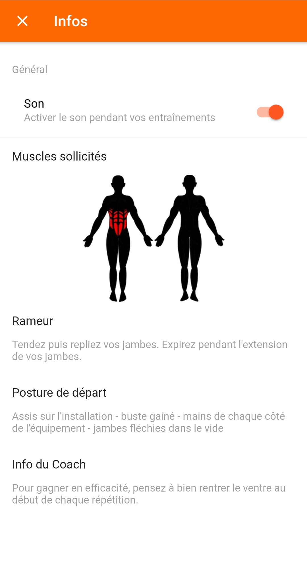 Un peu de géolocalisation, un brin de soleil et deux-trois clics plus tard tu seras transporté vers des vidéos d’exercices accompagnés de toutes les infos nécessaires à leur bonne réalisation.