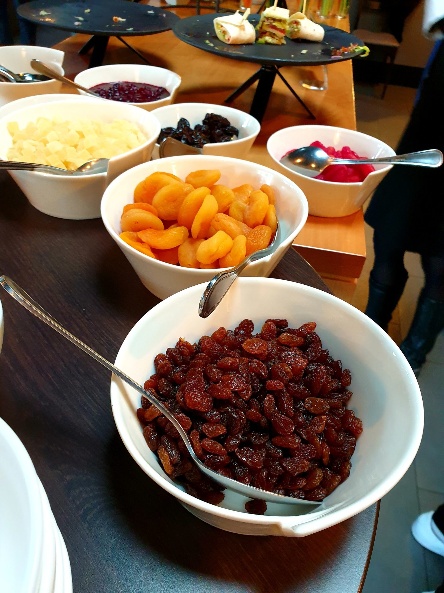 Au niveau du contenu il y avait pour les pâtisseries, des croissants, des pains au chocolat, boissons chaudes à volonté. Vous avez la possibilité aussi de vous presser une orange fraîche avec une machine en libre-service. Il y avait aussi dans la partie salée : de la charcuterie, un plateau de fromages complet, des œufs brouillés : bref tout ce qui compose un brunch classique dans les autres restaurants.