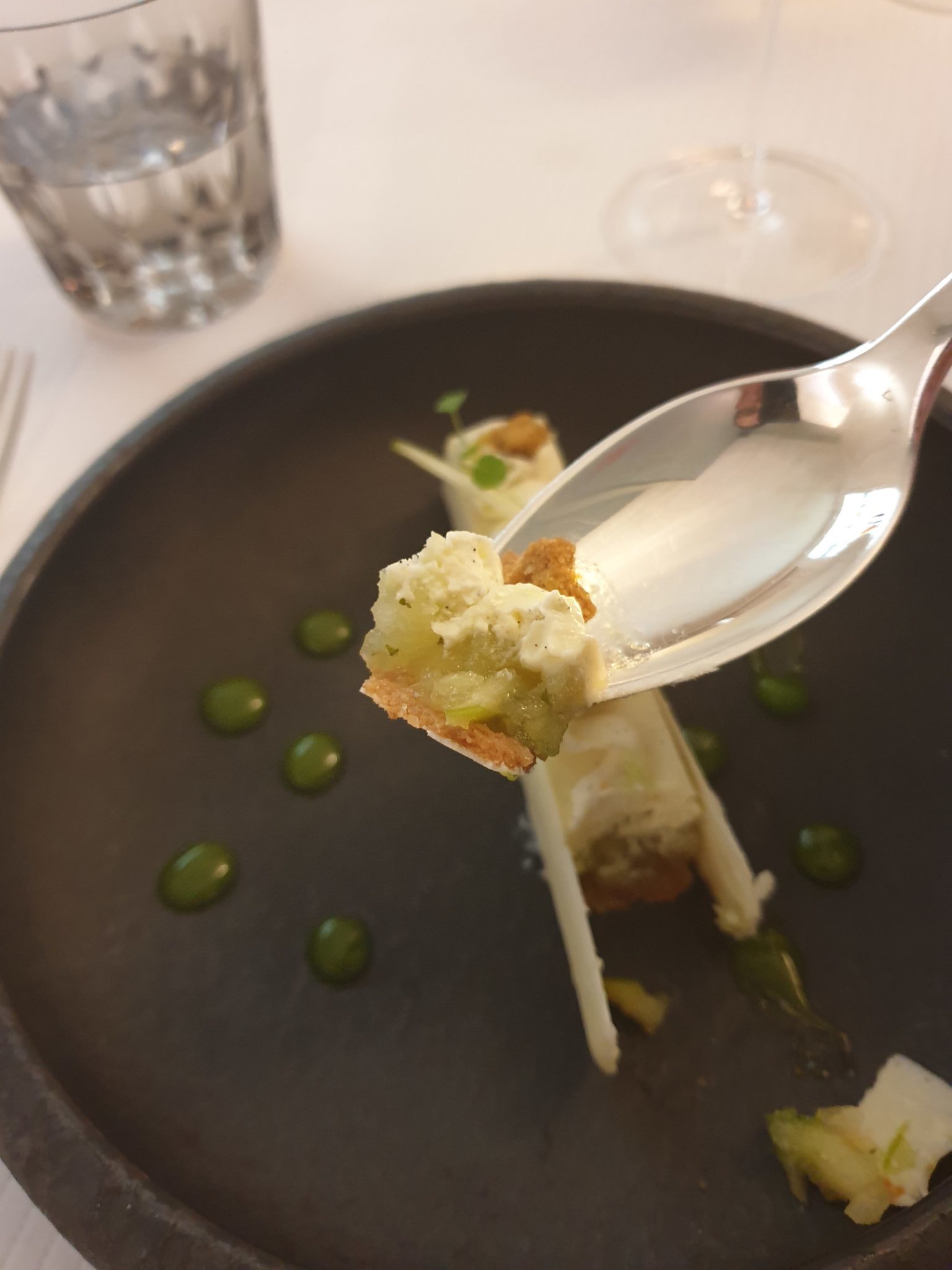 Comme vous pouvez le constater, ce menu est aussi riche dans la beauté de ses plats que dans sa variété. Il faut le gérer comme un marathon de petits bonheurs… On prend son temps, on apprécie le vin qui va avec, on passe un bon moment et hop, on passe à la suite… Quasiment impossible de reprocher quelque chose à cet établissement et à ce menu, c’est en effet du grand art aussi bien au niveau du service que de la qualité des plats. C’est le genre d’endroit où tu peux aller les yeux fermés pour un moment d’exception. Certes, ce n’est pas pour tous les budgets, car le menu est à 112 € par personne sans les vins, mais vous ne serez pas déçu ! Bien évidemment, il existe à La Casserole, d’autres façons de découvrir l’endroit pour moins cher, je pense notamment au menu déjeuner à 39 €.