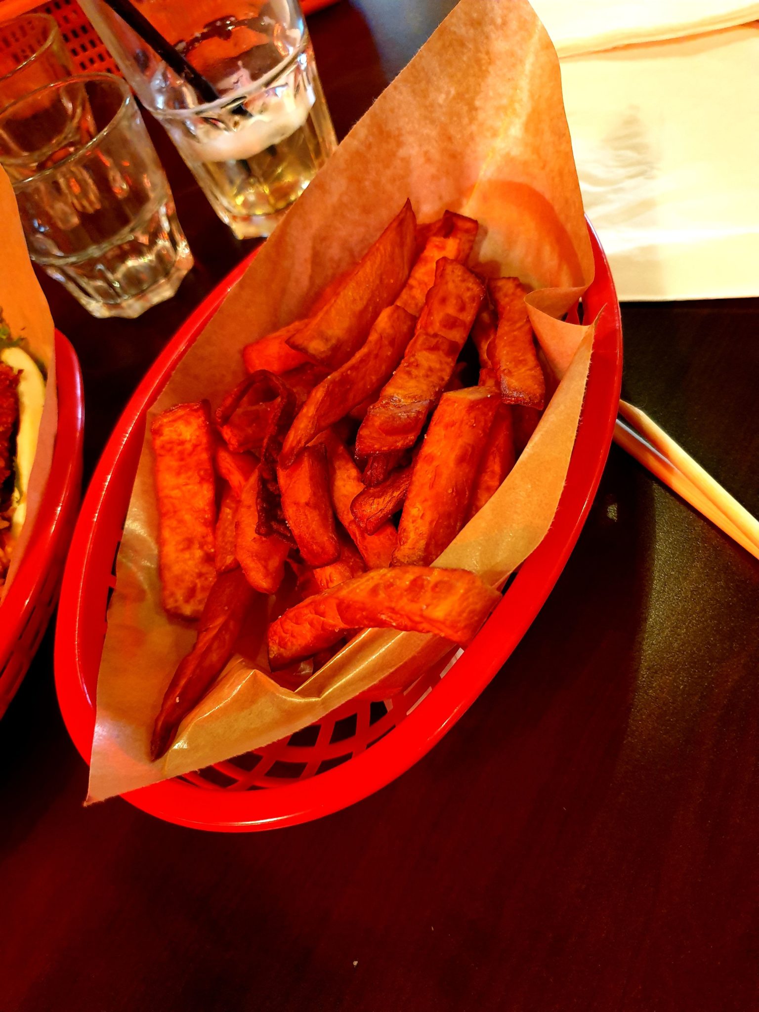 Donc pour conclure, au delà du manque d’originalité du concept, je dois avouer que j’ai bien mangé : c’était bon, pas très cher d’ailleurs. 17 € pour entrée plat dessert et boisson : raviolis Gyozas en entrée, Bao Chicken Crispy accompagné de frites de patates douces en plat et des perles de tapioca du Japon à la banane en dessert.