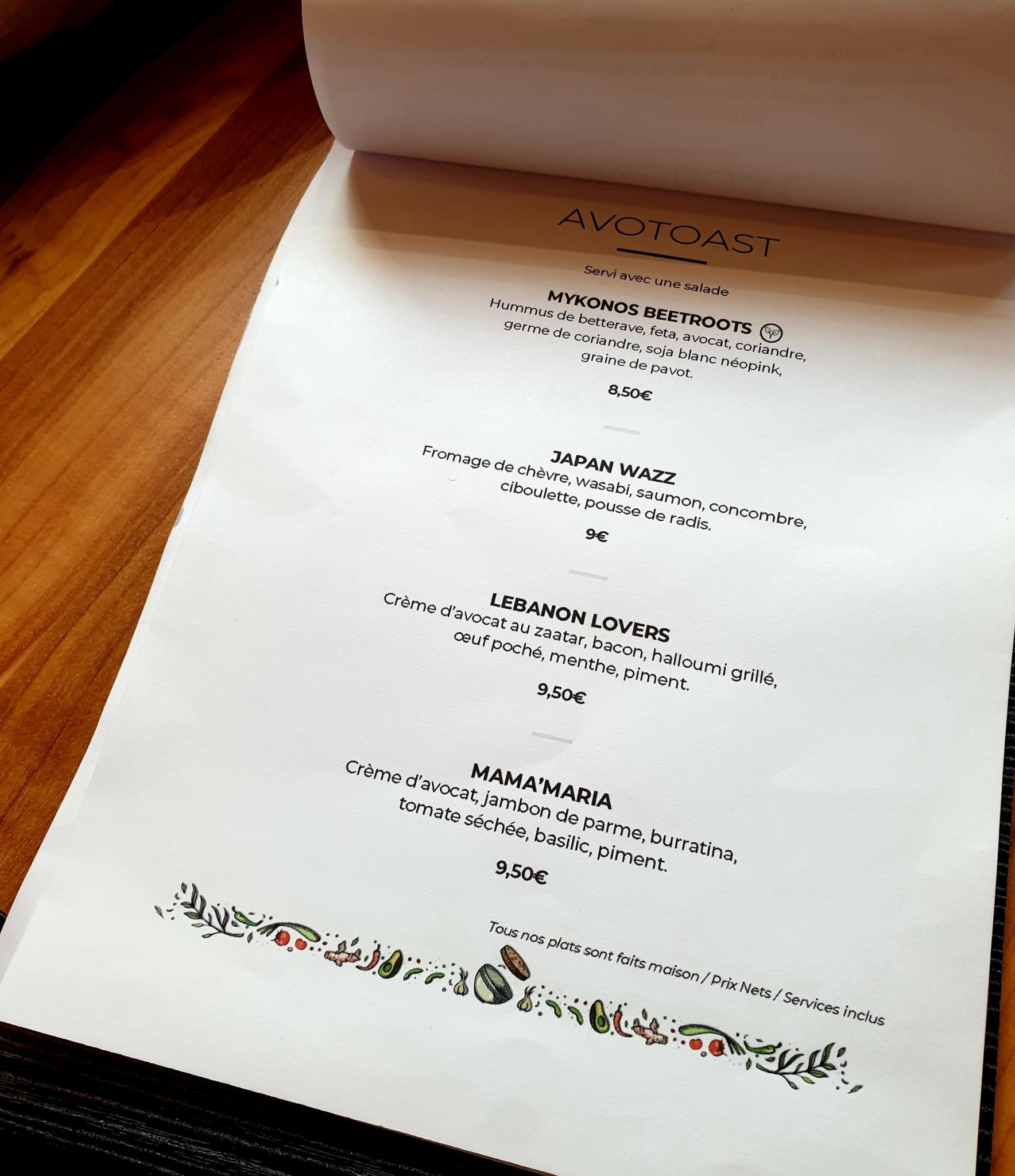 La carte est courte mais on ne sert ici que des produits frais ce qui est plutôt un bon signe. Je commande une tartine « Avotoast » MAMA’MARIA : crème d’avocat, jambon de parme, burratina, tomate séchée, basilic et piment. Quand à ma co-testeuse, elle opte pour le curry de bœuf. Mon toast est bon et relevé mais par contre le curry trop cuit… Dommage.