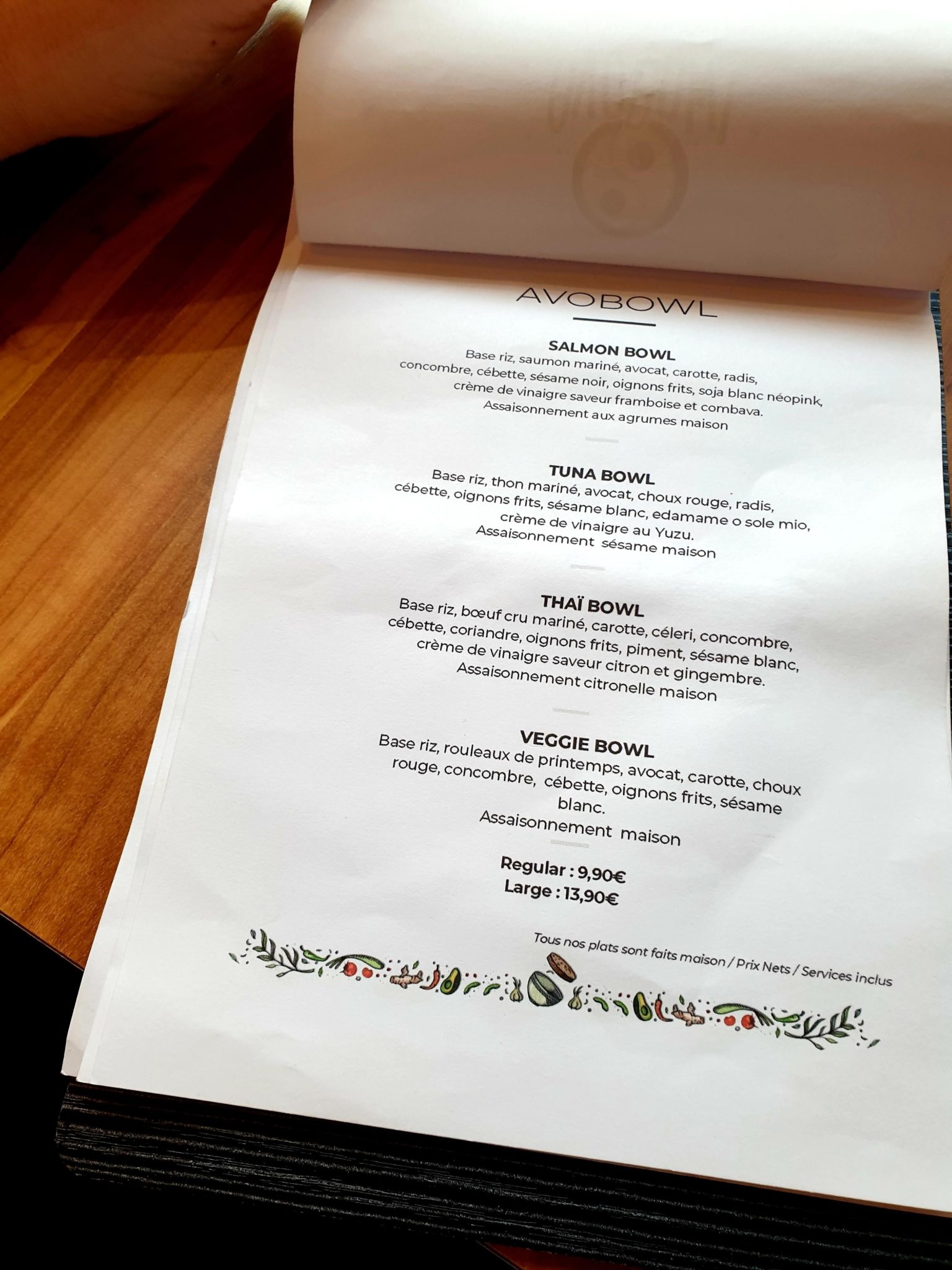 On a passé un petit repas sympa, mais vous l’avez compris, il faudra un peu de rodage à l’équipe du Avobowl pour être complètement prête. Mais l’idée est sympa, et prometteuse : la preuve étant le nombre de personnes présentes un samedi midi et la façon assez élégante de présenter les plats. Je pense y retourner bientôt pour goûter d’autres plats à la carte ou tout simplement pour tester le brunch.