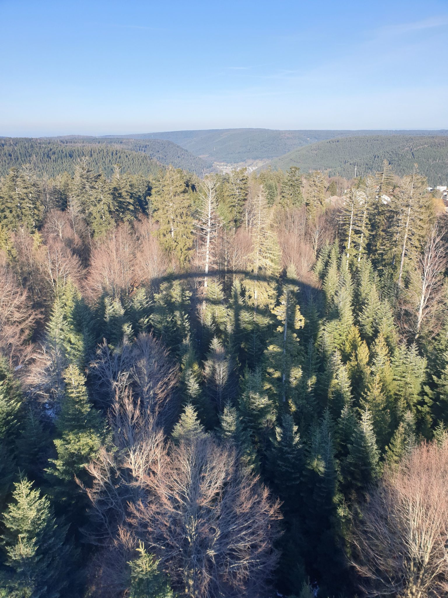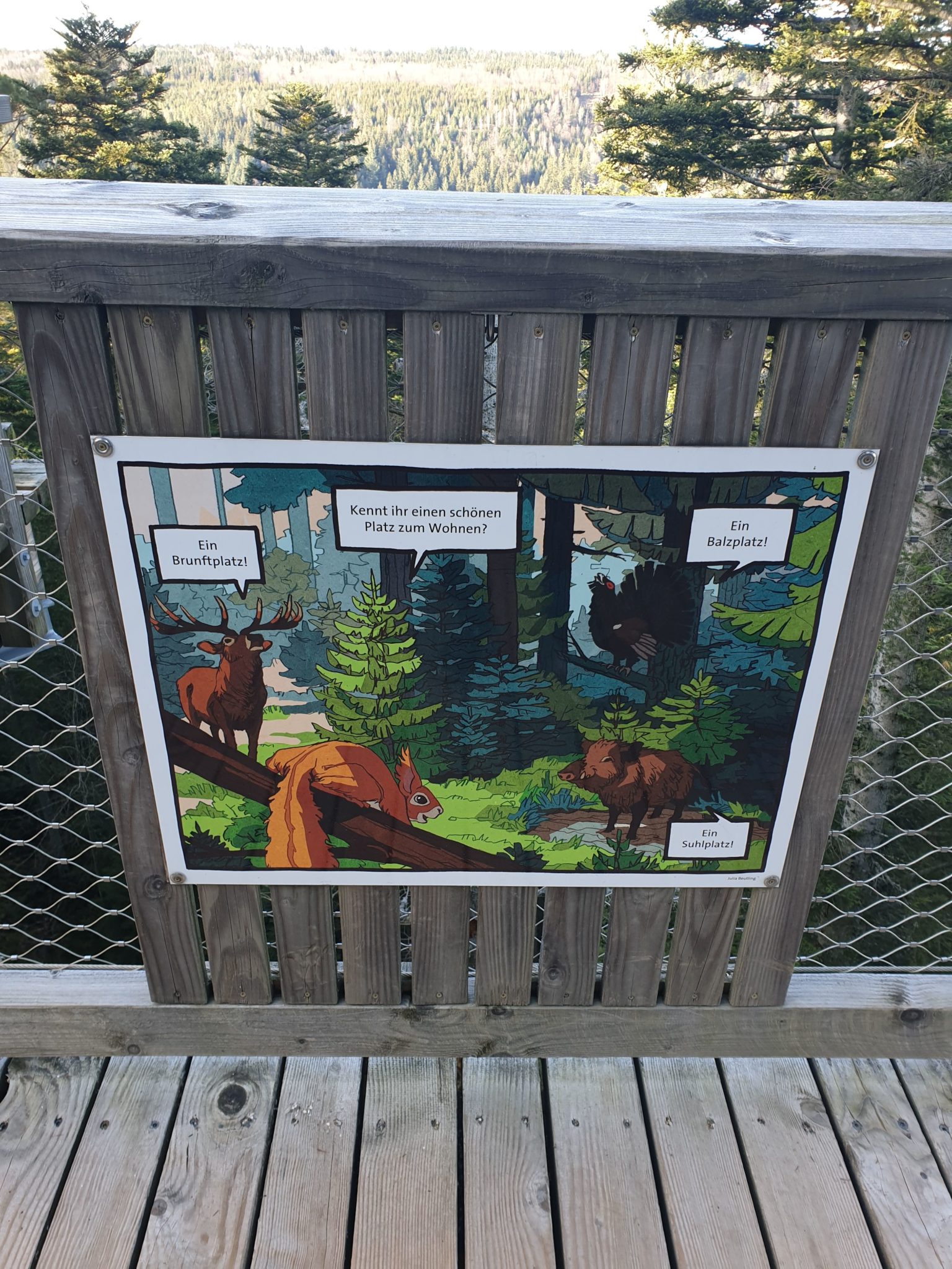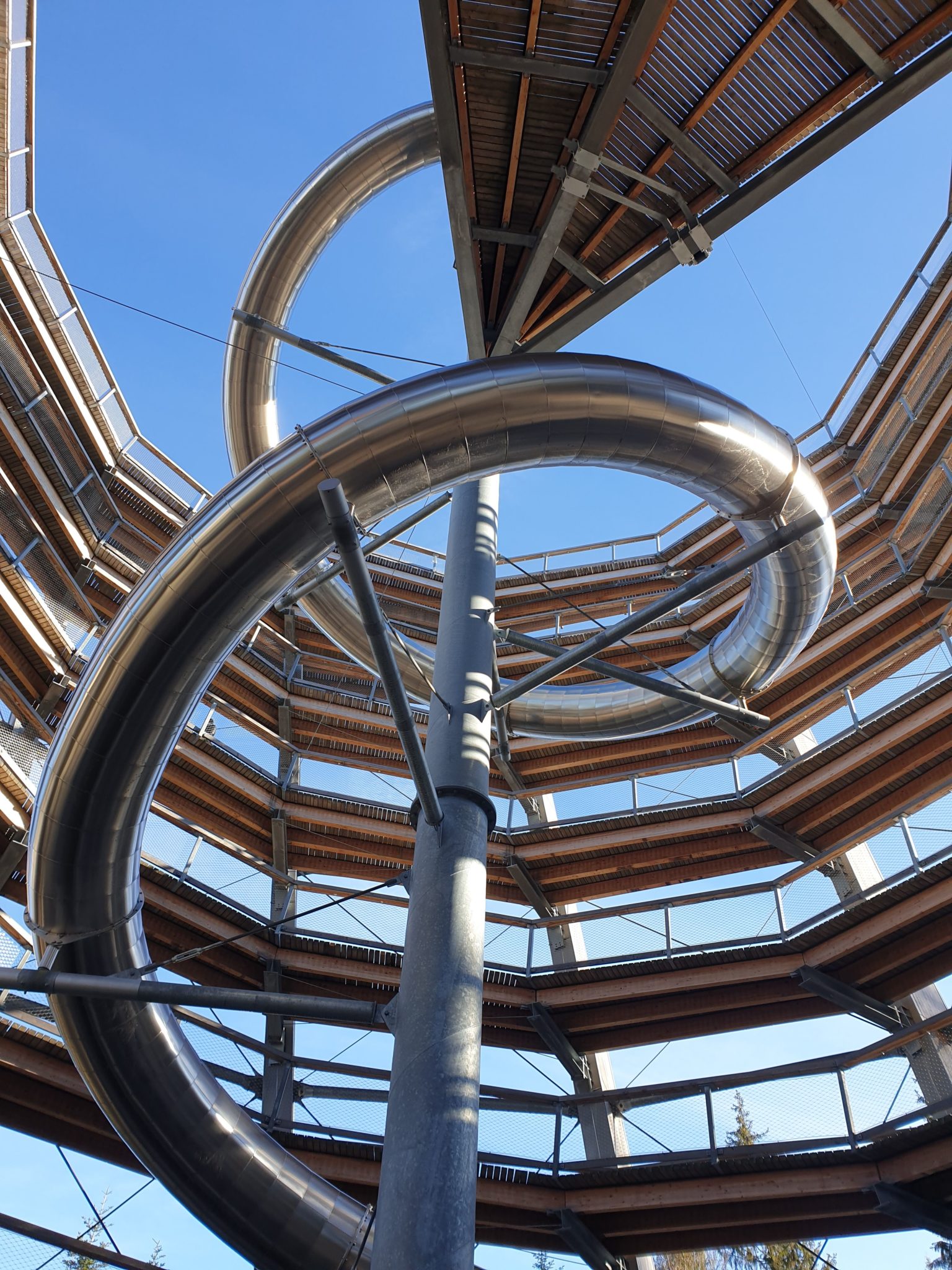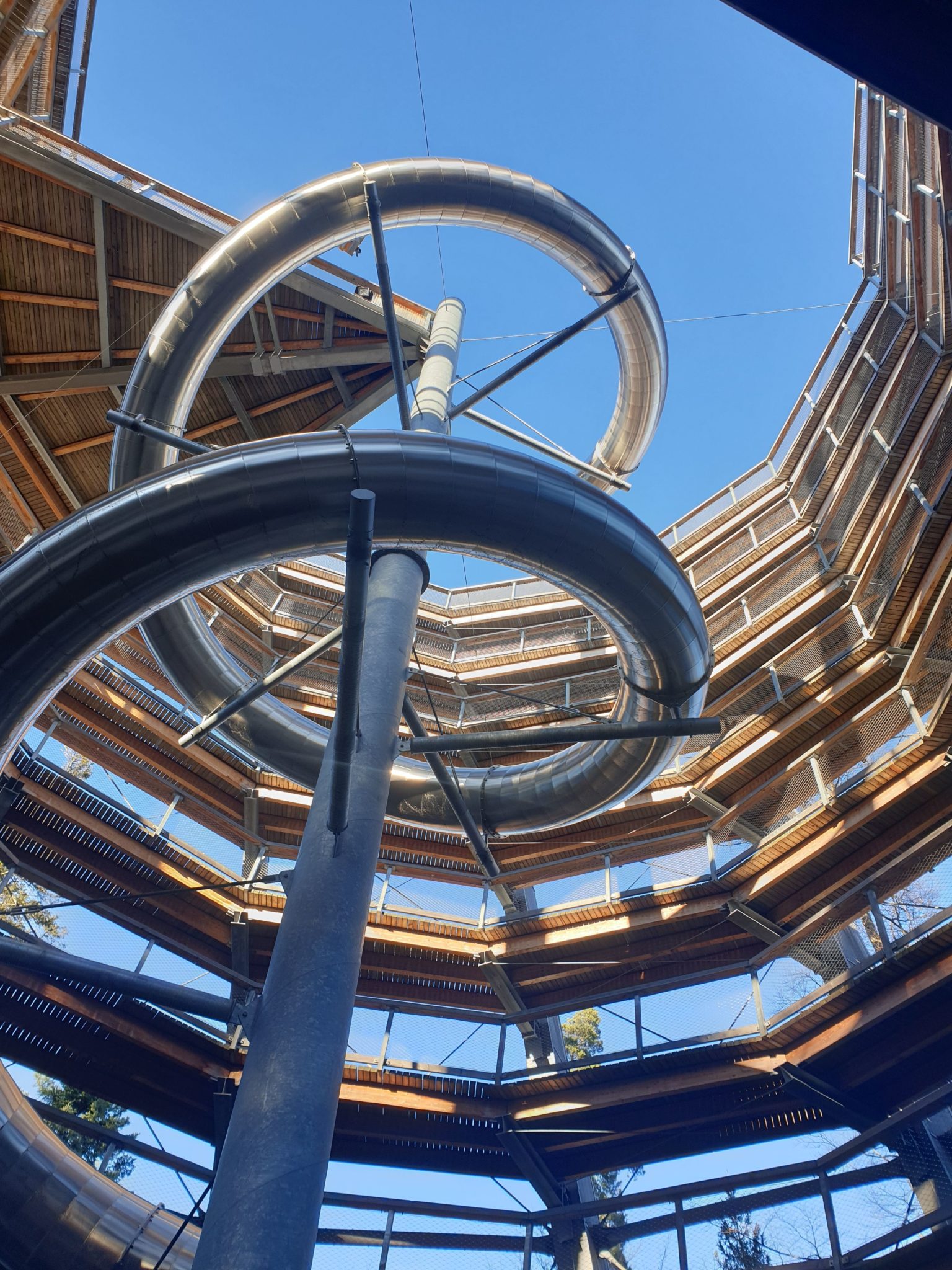 L’intérêt de la visite est le belvédère final, haut de 40 mètres qui permet de voir un panorama exceptionnel de la Forêt Noire. On peut admirer le Jura Souabe, le Kraichgau, ou encore la tour de télévision de Stuttgart. Pour descendre, deux possibilités : à pied ou par le toboggan (2€ supplémentaires à payer). Ce jour là, le toboggan était fermé à mon grand regret !