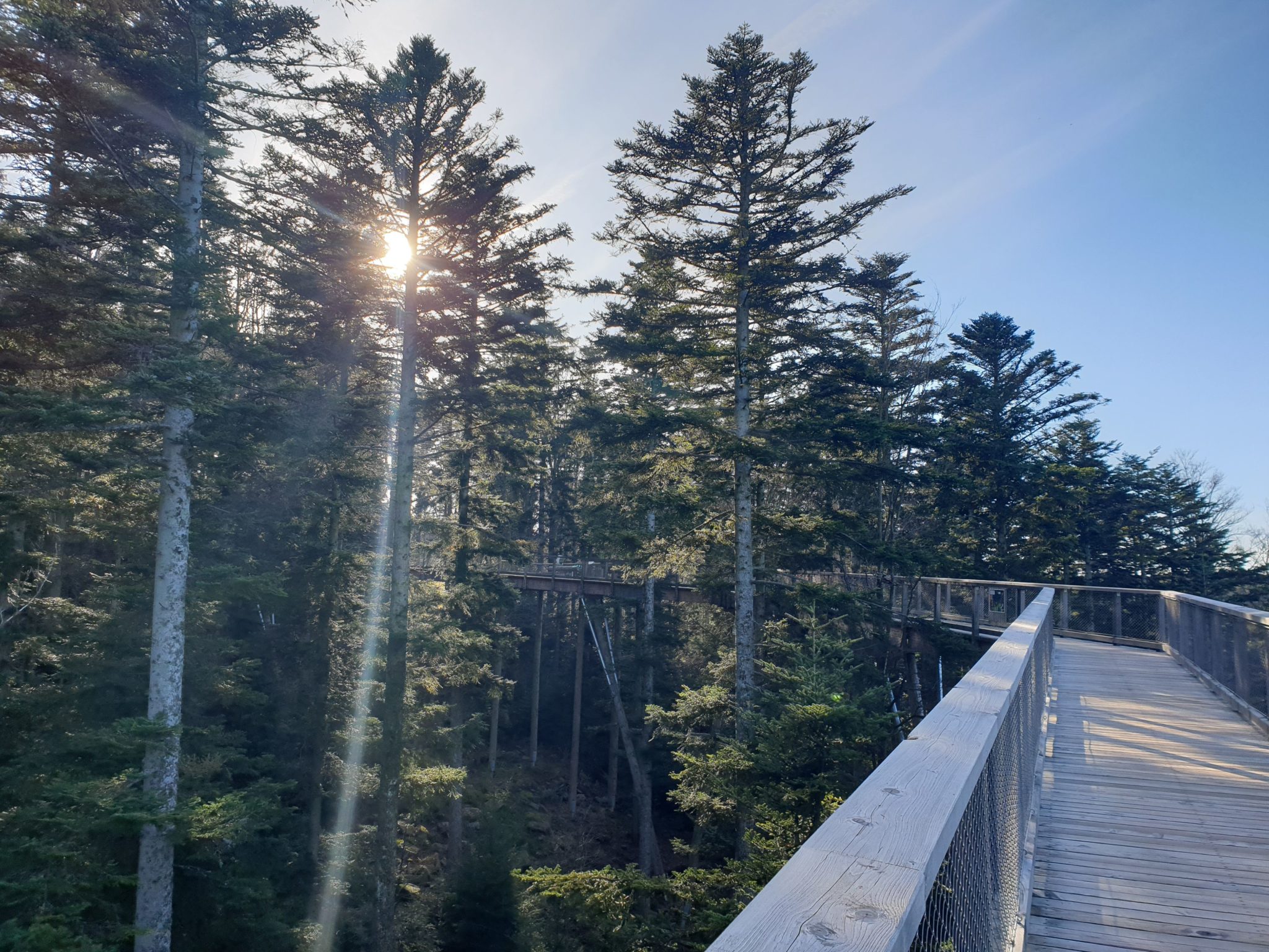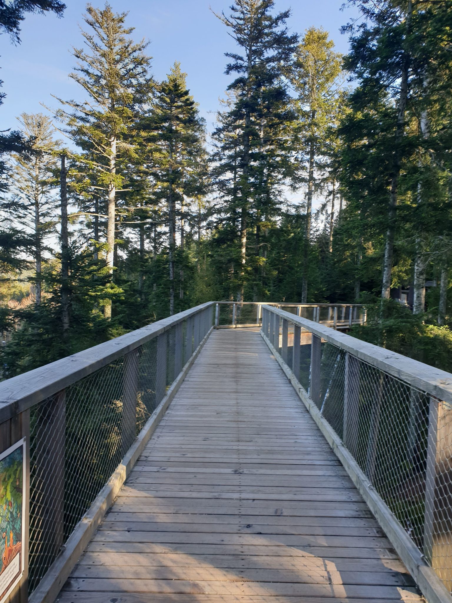 Le sentier n’est pas très long (1,25 Km, y compris la rampe de la tour), mais il vaut le détour ! On parcourt, avec une hauteur d’environ 20 mètres une passerelle de bois qui donne au milieu des hêtres, des sapins, des épicéas… De nombreuses stations ludiques et variées permettent, en cours de chemin, et surtout pour les enfants, de découvrir la faune et la flore de la région.