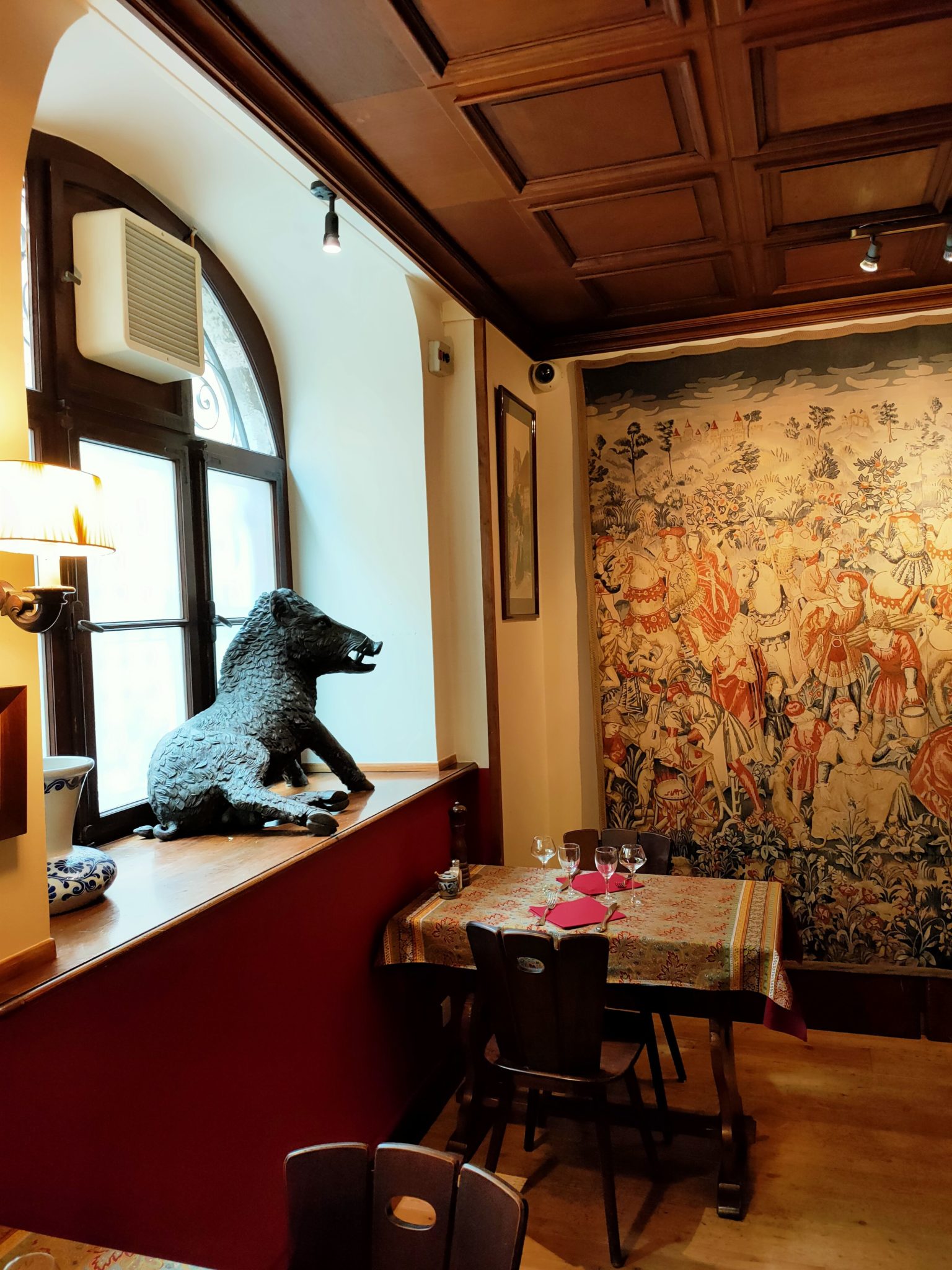 Qui ne connait pas « Chez Yvonne » !? Ce winstub situé au cœur du centre de Strasbourg est une des tables les plus connues de la ville. Outre le fait qu’elle accueille depuis des années les personnes les plus connues du monde de passage à Strasbourg, Chez Yvonne est aussi une table de saveurs et de qualités qui met à l’honneur le terroir alsacien pour le bonheur des petits gourmands comme moi ! Nous avons testé pour vous là-bas un délicieux foie gras, une choucroute et un jarret de porc braisé à l’amer bière avec ses pommes sautées et pour desserts : moelleux au chocolat, crème anglaise au lieu bio des Ruchers de Salm et un dessert à la cerise… Autant vous dire que l’on s’est régalé du début à la fin… Heureusement que nous avions monté la cathédrale avant car après cela aurait été un peu délicat ! 😉 Le temps de remercier l’équipe de l’établissement pour leur accueil chaleureux, direction la dernière étape de la journée…