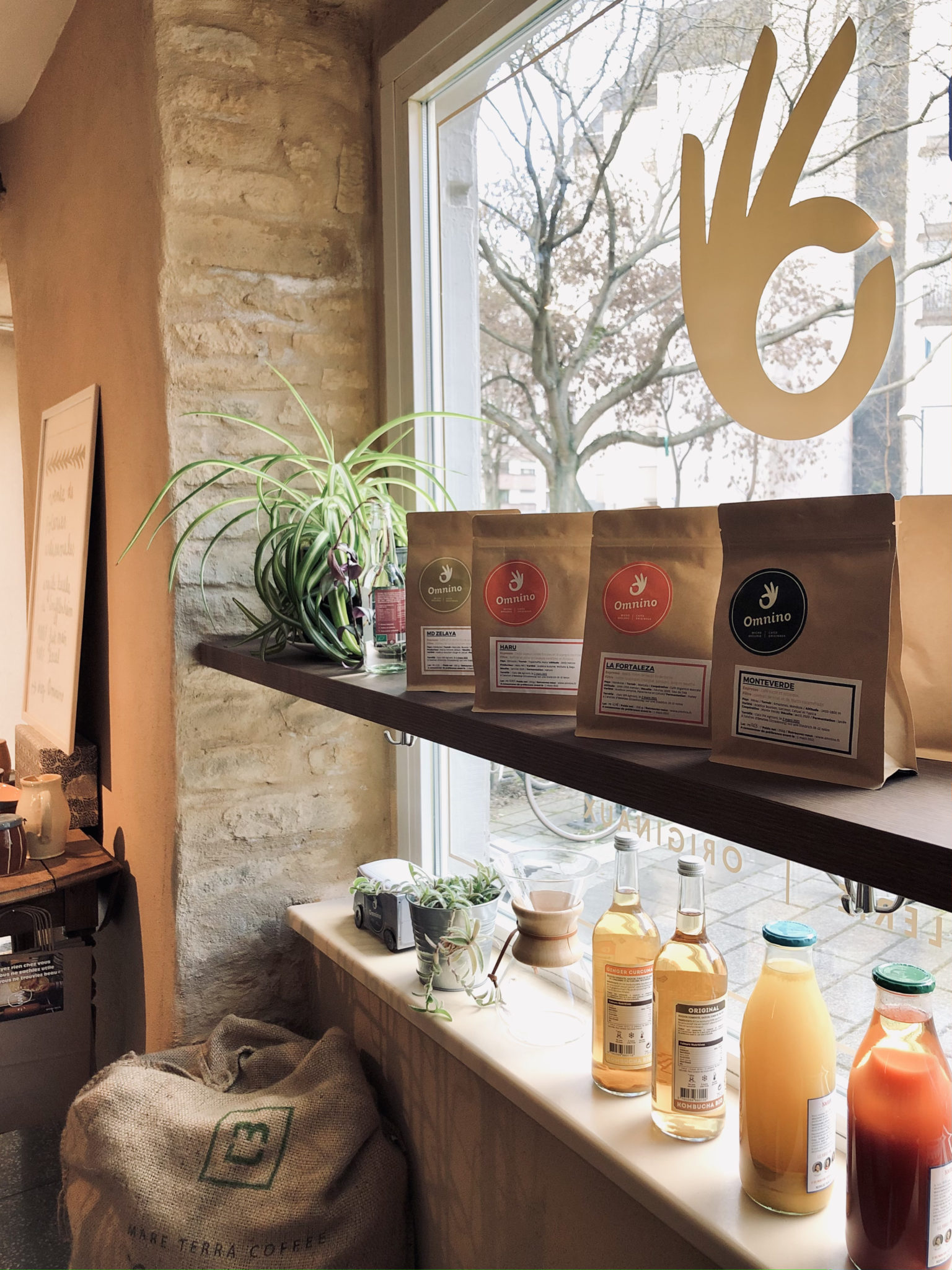 Comme dans les autres boutiques, vous y retrouverez les boissons et recettes qui font la réputation de la maison. Omnino vous propose également du matériel et de précieux conseils pour réussir votre café chez vous.