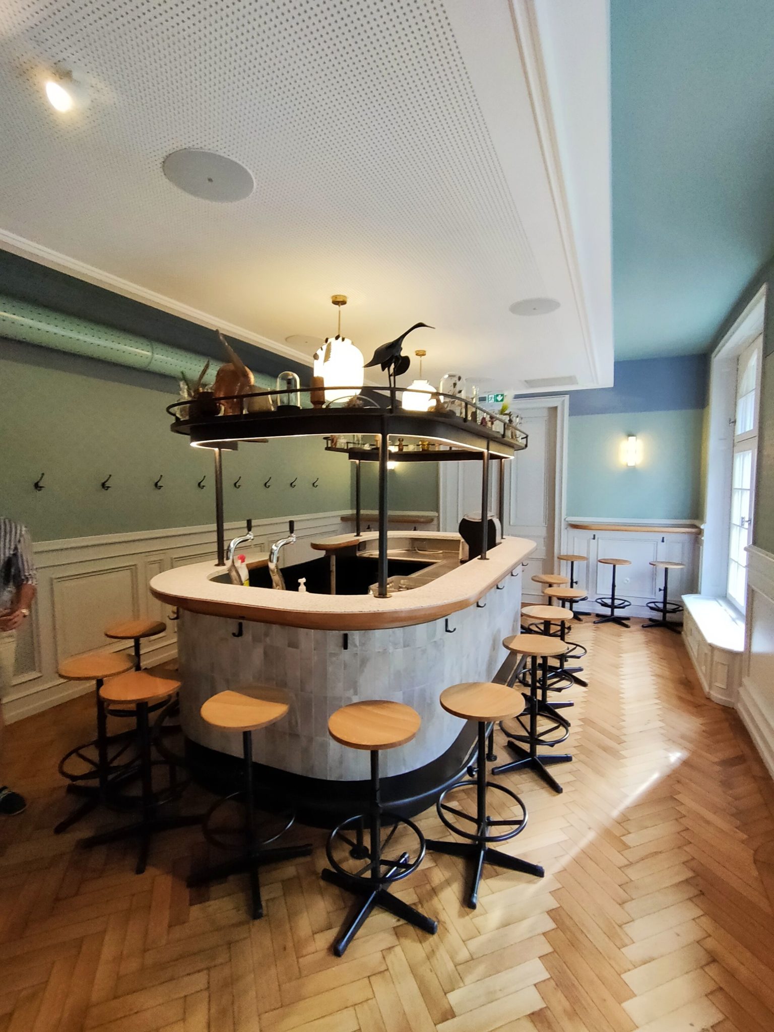 C’est un lieu de 500m² sur plusieurs niveaux chargé d’histoire qui accueillait anciennement une banque (Strassburger Bank, puis la BNP) mais qui va accueillir dès aujourd’hui un nouveau concept. Ce pub à la décoration atypique sera à mi chemins entre un restaurant, un bar, un pub et une brasserie… Ce beau et gros projet est géré par Diabolo Poivre Gestion à qui on doit déjà LA HACHE, LA CORDE A LINGE, TZATZI, entre autres… Il aura fallu 3 millions d’euros et 1 an de travaux (un gros travail a été fait sur la partie acoustique du lieu) pour restaurer l’endroit pendant cette année 2020 si particulière. Librement inspiré des pubs anglais pour leur chaleur et leurs bonne ambiance, le lieu est donc dédié à des divers usages : boire, manger, fêter un évènement, etc… L’idée de l’endroit étant de proposer un lieu de vie multiple : au bar, dans les salons, à table, dans les espaces privatifs dédiés aux entreprises.