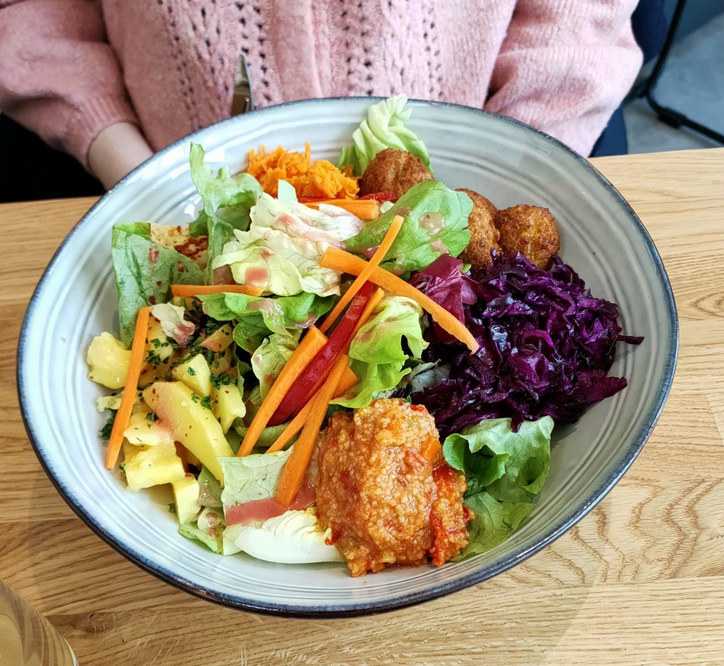 J’ai trouvé ça très sympa, assez convivial. Les volumes du bâtiment sont assez grands du fait de l’église dans laquelle on se trouve, c’est très agréable. La nourriture est bonne, bien servie même si le service est parfois un peu lent. Cependant la sympathie et les sourires de l’équipe rattrapent le coup ! Pour deux personnes j’ai payé 38 €TTC pour deux plats et deux boissons : soit 19€TTC par personne. Je pense y retourner un jour où je serais en vadrouille du coté de Kehl et que je voudrais manger sainement. Et vous, ça vous tente ?