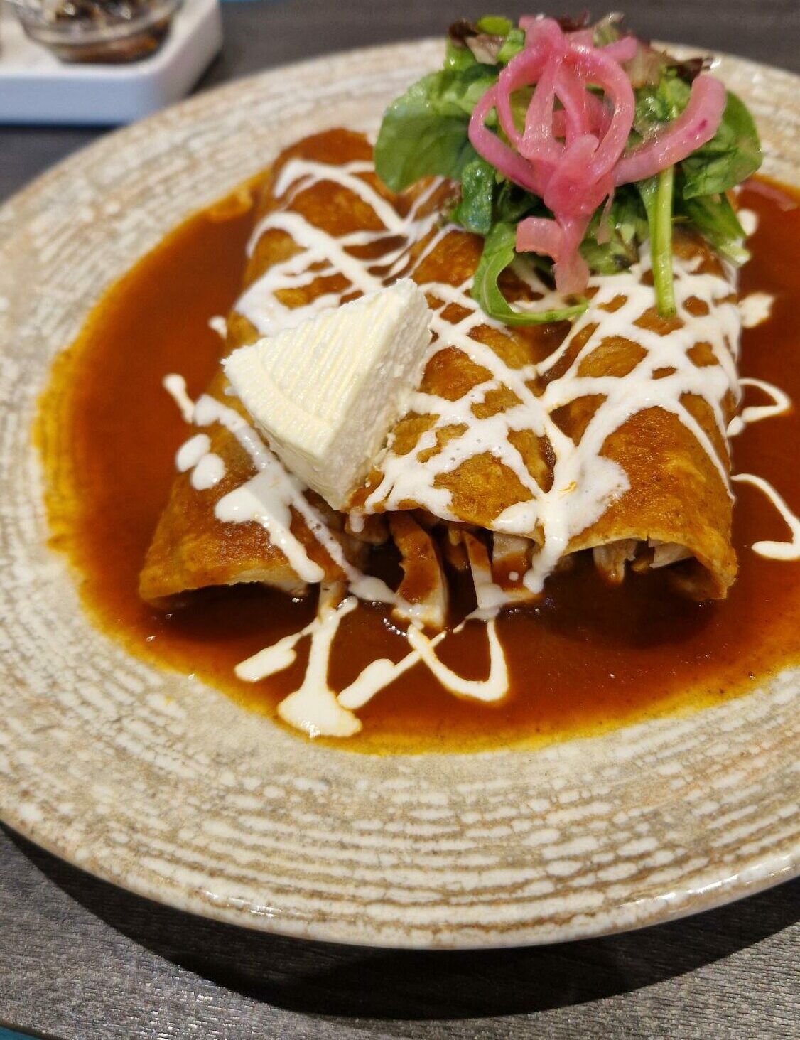 La carte mélange plats traditionnels et créations maison. On retrouve des enchiladas au poulet, la fameuse birria cocula (bœuf mijoté 24 h dans un bouillon maison), ou encore des nouveautés comme le pulpo Vallarta (poulpe grillé et purées parfumées à la truffe) ou le saumon a la diabla pour les plus téméraires.